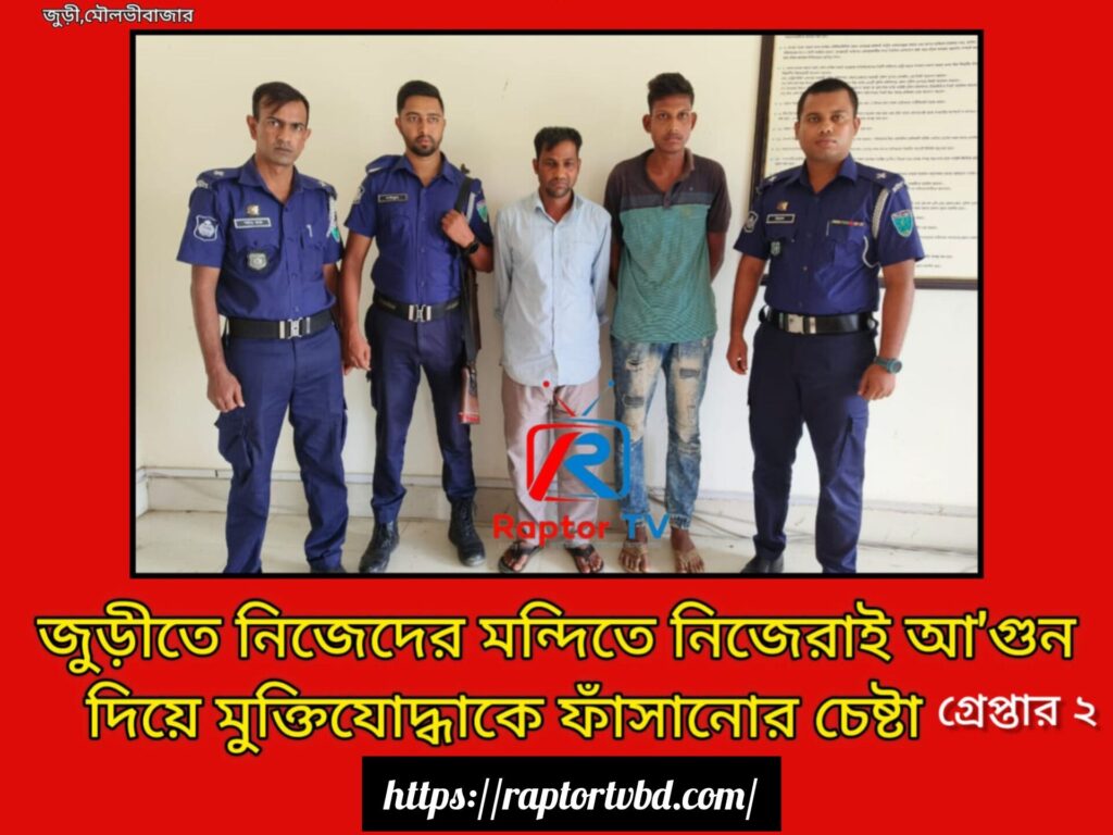 শুক্রবার বিকেলে মুক্তিযোদ্ধা আলা উদ্দিন বাদী হয়ে ঘটনার সাথে জড়ীত ১৮ জনের নাম উল্লেখ করে জুড়ী থানায় মামলা দায়ের করেন। সন্ধ্যায় এজাহারভুক্ত আসামি বাড়ীর মালিক অসিত রুদ্র পাল (৪০) ও নাদিম আহমেদ (১৯) কে গ্রেপ্তার করেছে পুলিশ।