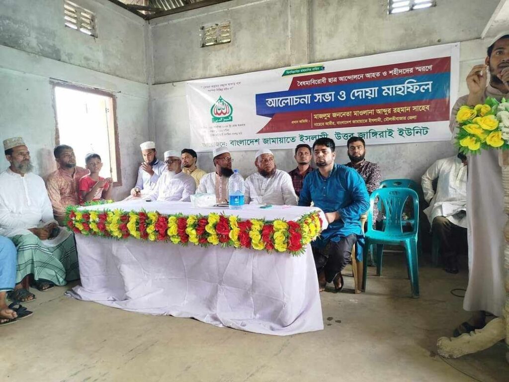 মৌলভীবাজার জেলার জুড়ীতে বাংলাদেশ জামায়াতে ইসলামী জায়ফরনগর ইউনিয়নের উত্তর জাঙ্গীরাই ইউনিট কর্তৃক বৈষম্য বিরোধী ছাত্র আন্দোলনে আহত ও শহীদদের স্মরণে আলোচনা সভা ও দোয়া মাহফিল সম্পন্ন হয়েছে।